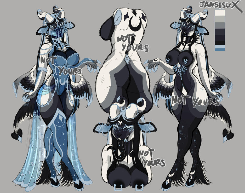Includes : 2 fullbodies: front view, flipped fullbody with clothes, info and color palette.NO NEW EXAMPLES!